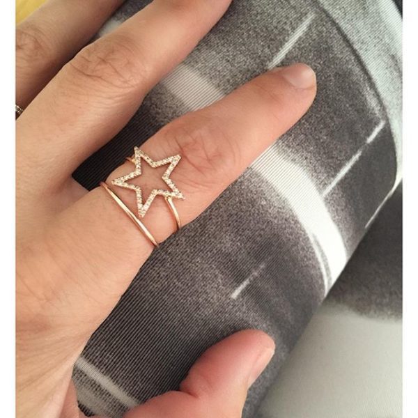 Looking totally glam during our Saturday morning sweat | Loving our rose gold diamond star ring stacked with a thin rose gold band | #alexisjewelry #finejewelry #madeinla #losangeles #jewelry #rosegold #rings #diamonds #stacked #saturday #morning #sweat